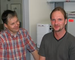 Dr. Eike Kleine-Benne (right) and Dr. Wolfgang Buscher discussing technical details of the new Plasma Emission Detector (PED) in the laboratories of the University Münster