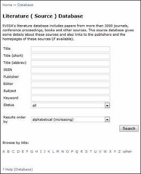 How to search in EVISA's Journal Database ? Screenshot: EVISA's Journal Database: Search window