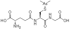 Name: Darinaparsin IUPAC/Chemical name: (S)-2-amino-5-(((R)-1-((carboxymethyl)amino)-3-((dimethylarsino)thio)-1-oxopropan-2-yl)amino)-5-oxopentanoic acid CAS#: 69819-86-9 Chemical Formula: C12H22AsN3O6S Exact Mass: 411.04453 Molecular Weight: 411.31 Elemental Analysis: C, 35.04; H, 5.39; As, 18.22; N, 10.22; O, 23.34; S, 7.80